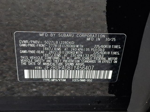 Crystal Black Silica 2026 Subaru Outback Premium AWD